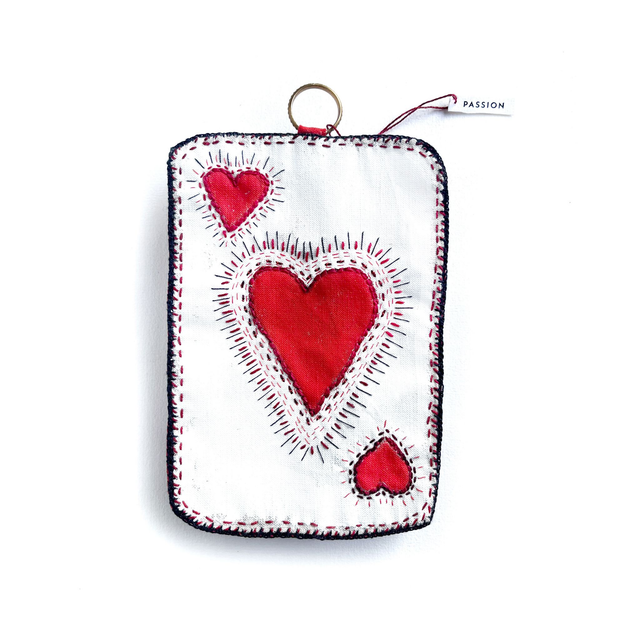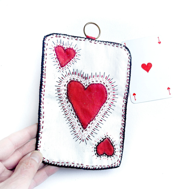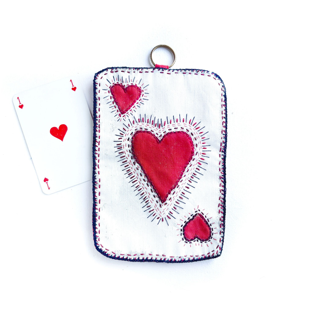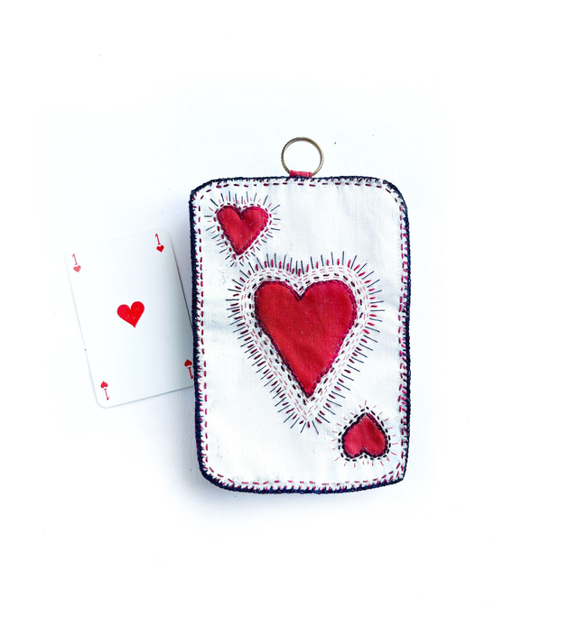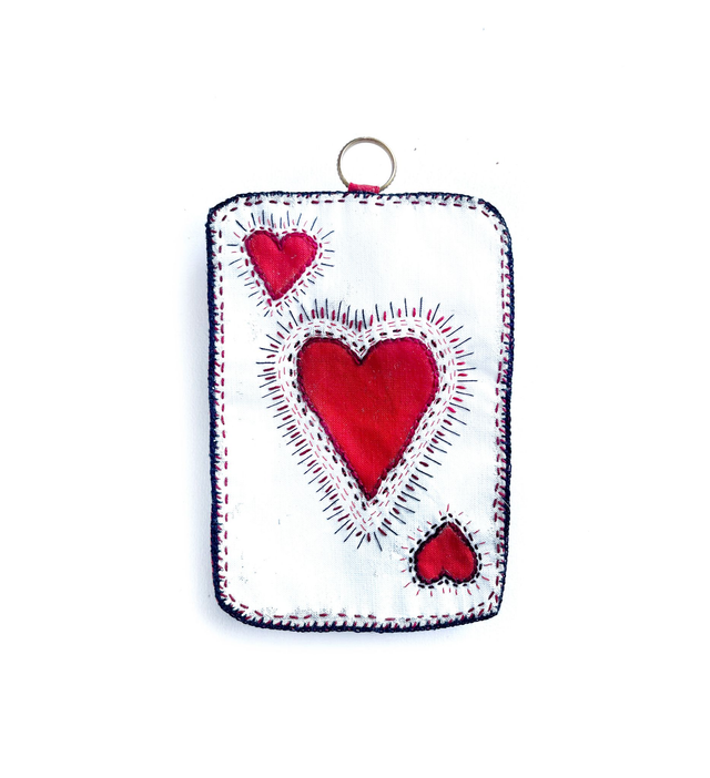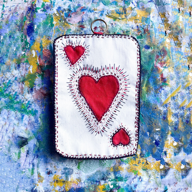 As de cœur rouge, peint et brodé main