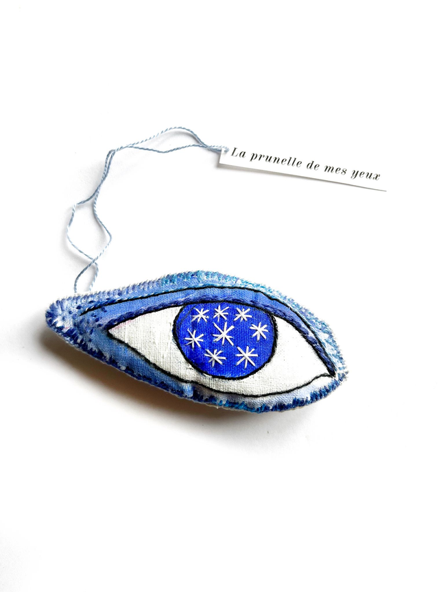 Grigri œil bleu brodé main