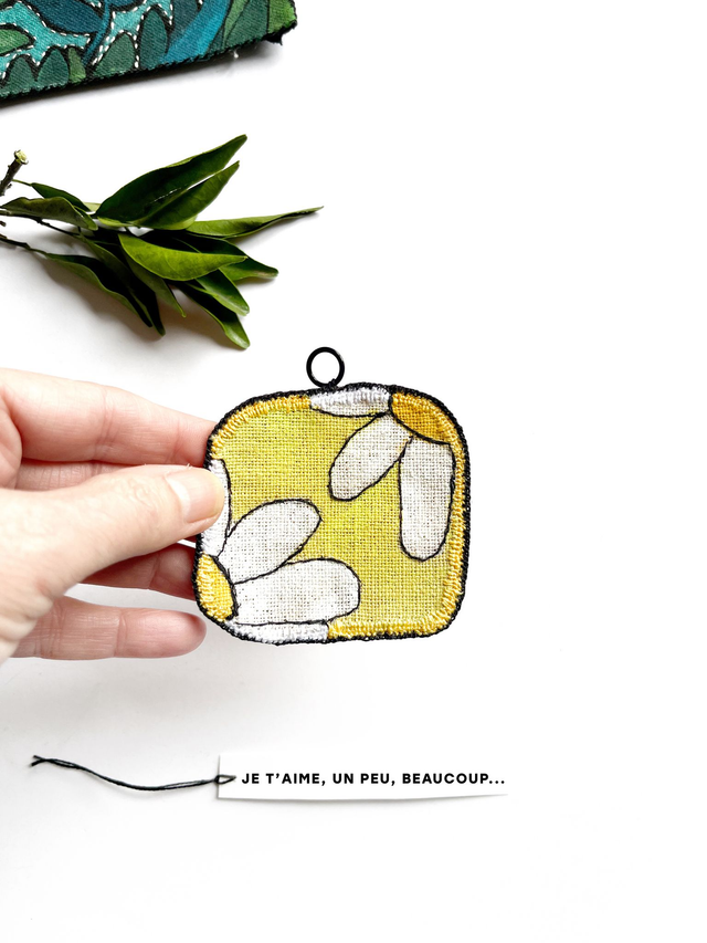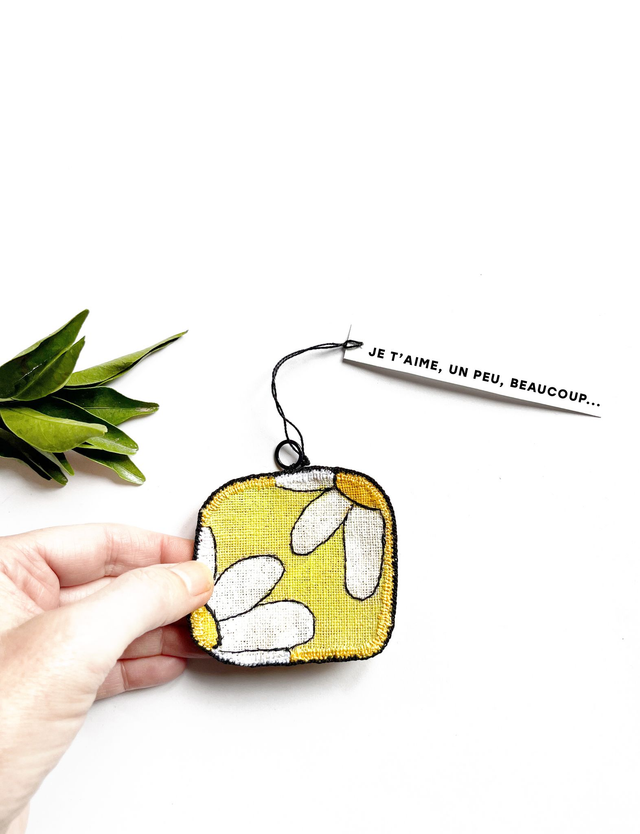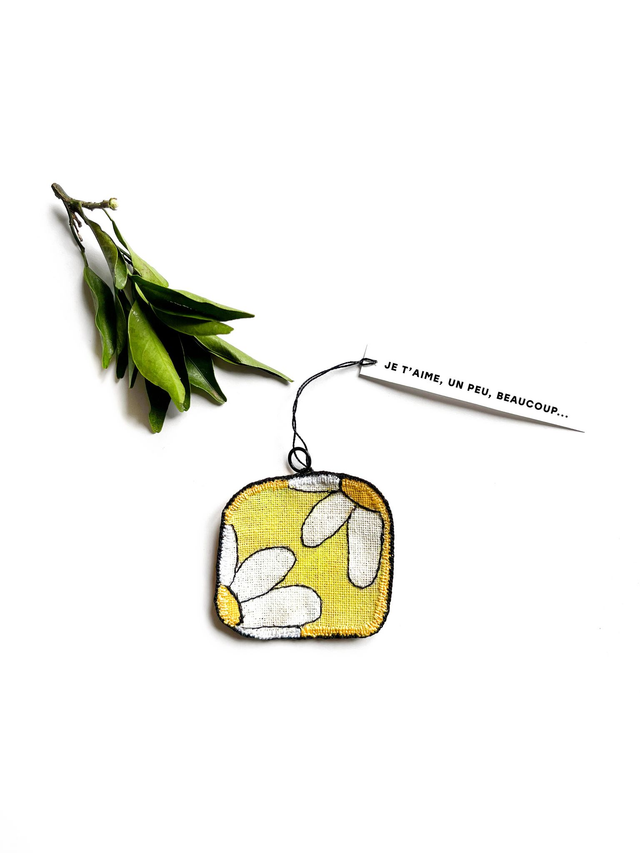 Mini-tableau brodé pâquerette Je t'aime, un peu, beaucoup...