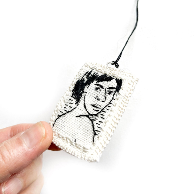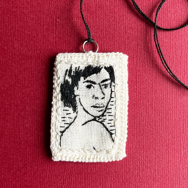 Ce portrait peut également être porté en collier d’une façon originale.