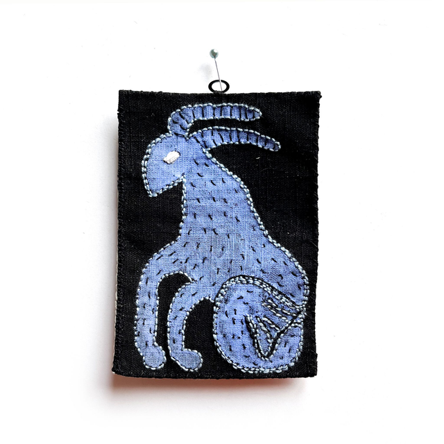 Signe astrologique capricorne, peint et brodé