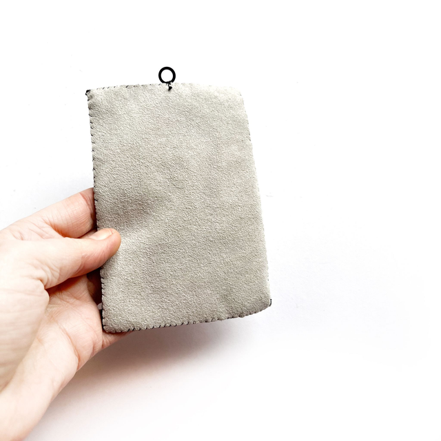 Un anneau noir est cousu sur le haut pour pouvoir afficher le tableau au mur.